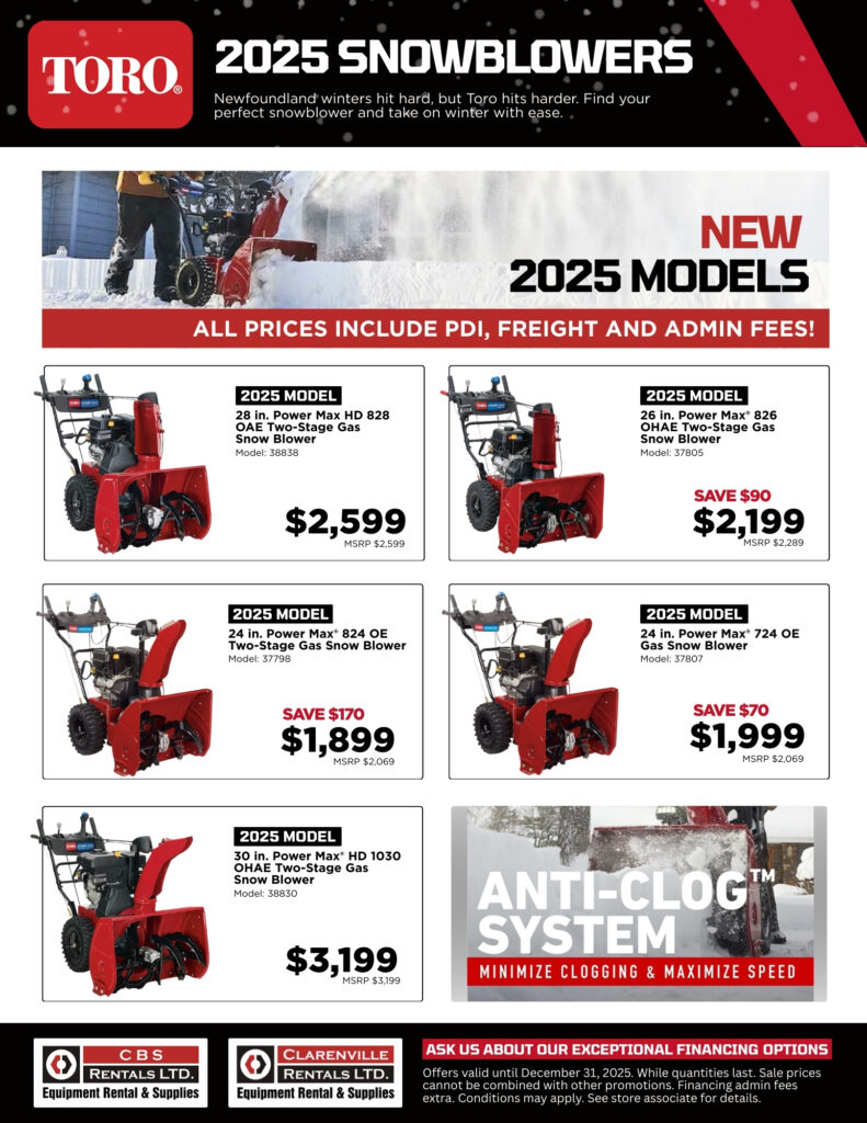 - Save the fees on NEW 2025 Toro snowblower models. (Save PDI, freight and admin fees. Taxes extra, financing fees may apply.)